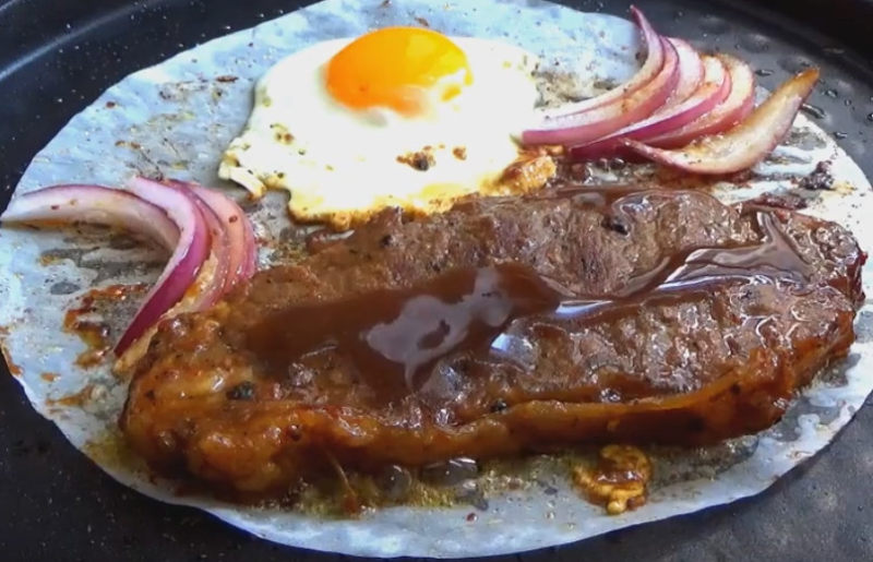 7:煎到两面焦黄,用筷子可穿过肉片即熟了,关火。