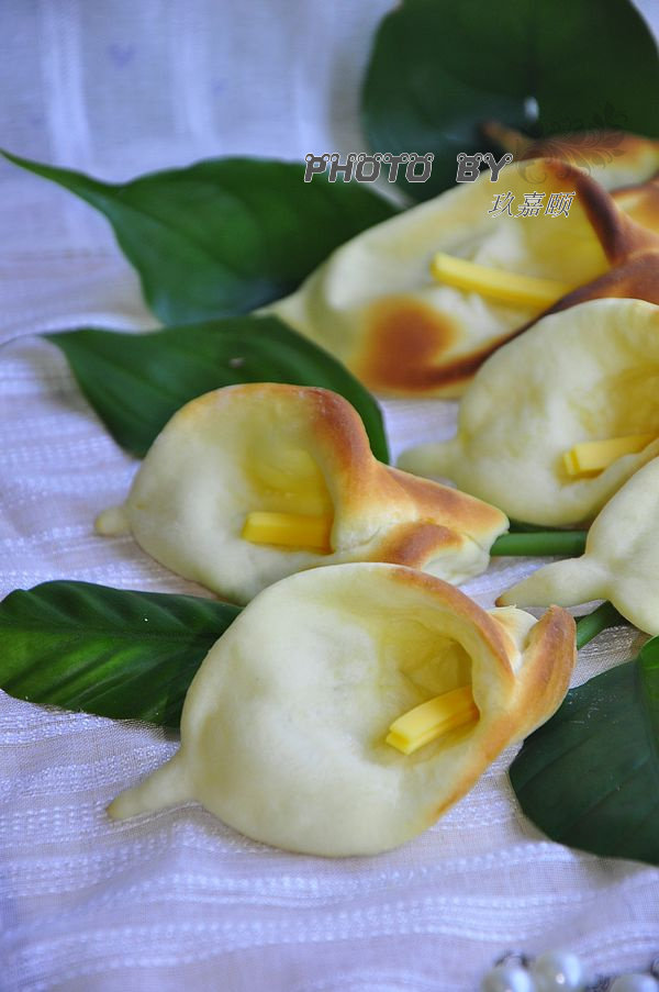 【花枝配方】面粉300克;鸡蛋110克;糖90克;黄油60克;面包糠适量;