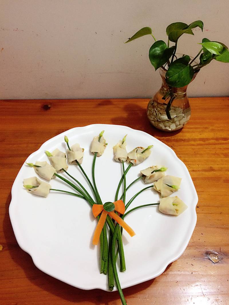 这个造型纯属除草,不过韭菜苔肉馅味道不错