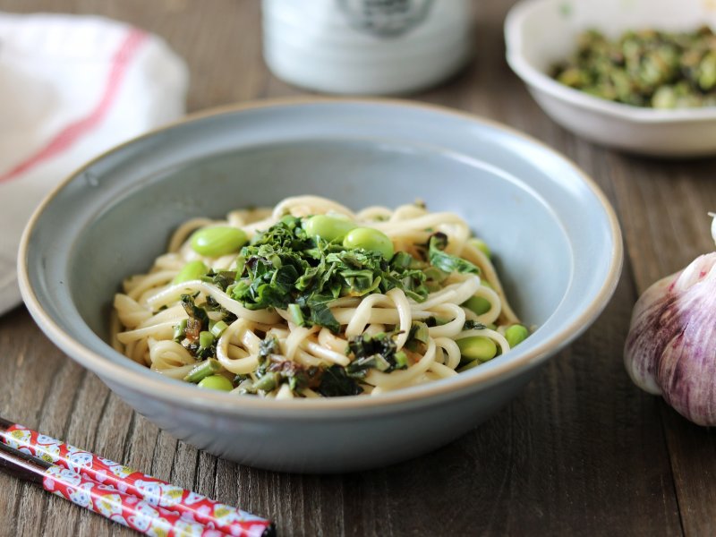 香椿100克;大蒜适量;毛豆100克;挂面适量;