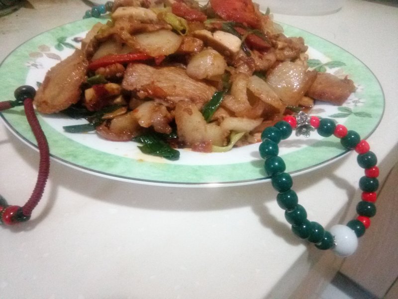 猪肉适量;胡萝卜适量;蒜苗适量;豆腐干适量;食用油适量;