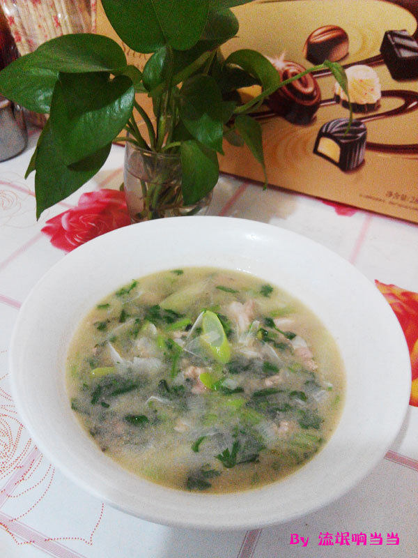 3:将葱花炸香加入青菜水烧开加入之前的丸子烧开即可!
