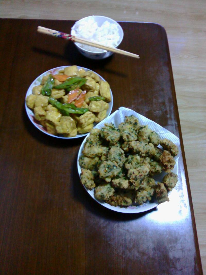 5:来个合照,装盘上桌。味道很好哦。是小时候的那种感觉,外酥里嫩。