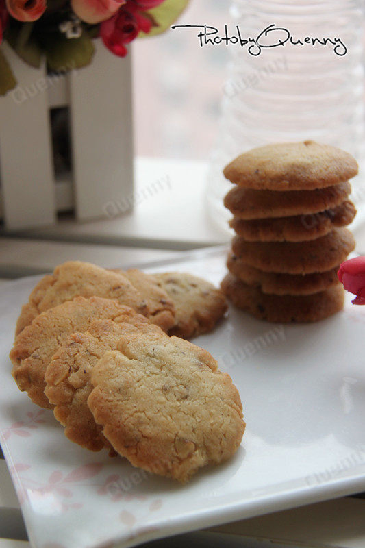 低筋面粉400g;细砂糖160g;玉米油40g;鸡蛋45g;臭粉8g;泡打粉2g;核桃仁70g;