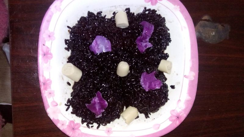 1:两种糯米浸泡过夜,放入电饭锅煮熟