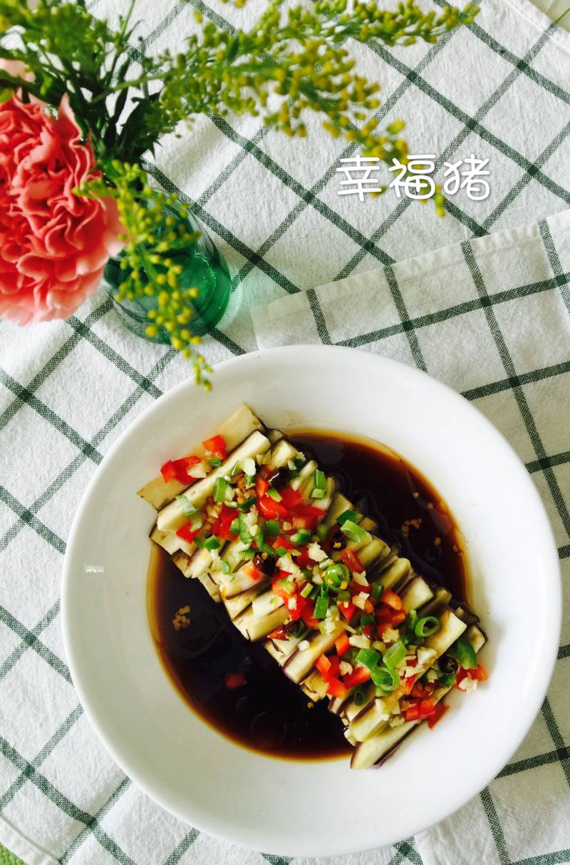1:茄子洗净分成2-3段,放到蒸锅中蒸熟(用筷子能轻松插透茄子就证明茄子熟了),拿出凉凉。