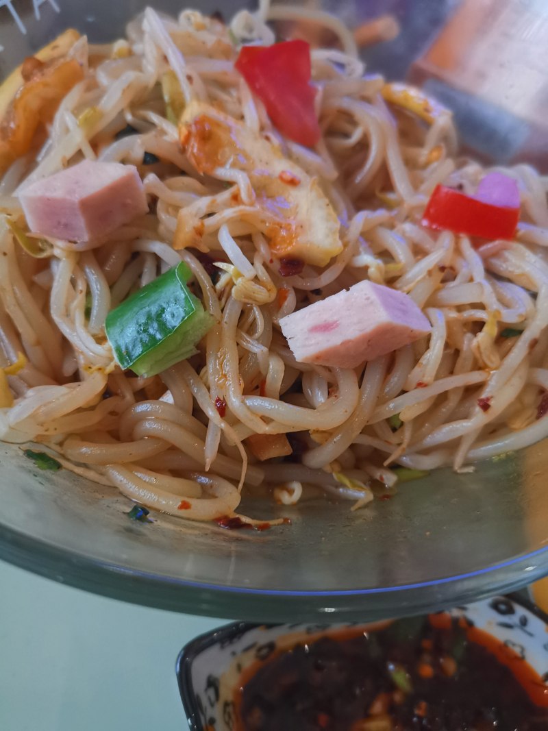 豆干1片;豆芽少许;粉丝少许;葱少许;