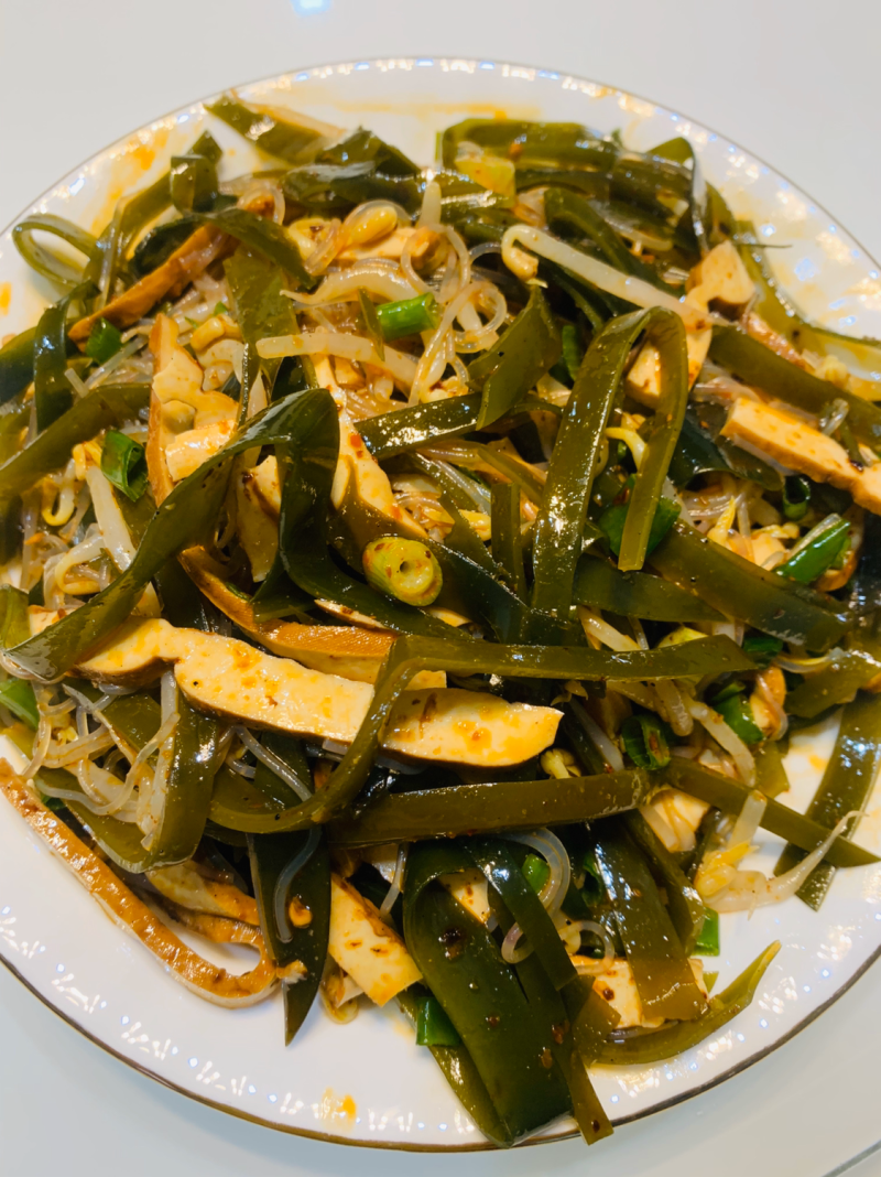 1:主料全部切丝,焯水继生,放到冰水里浸泡