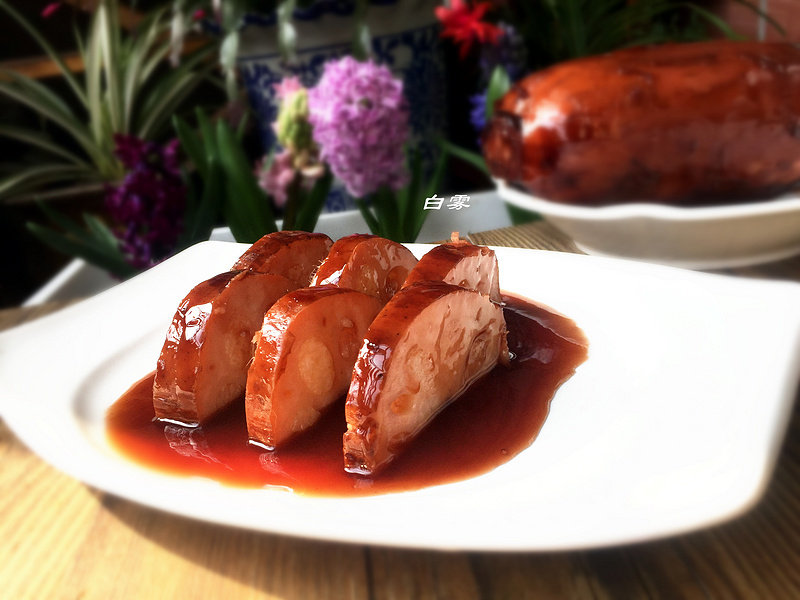 9:切好的藕放入盘子内,淋上汤汁即可。