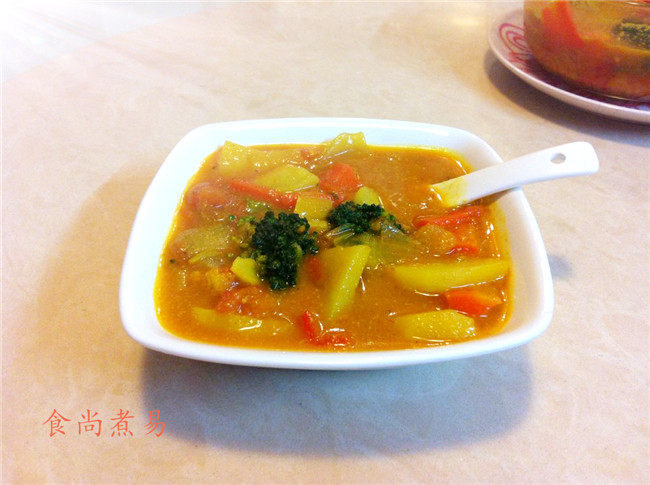 咖喱粉的用量按个人喜好,咖喱粉有块状、粉状、酱袋、味道和产地也有区别。用时先看看说明书或事先了解一下为好。加了浓缩椰浆口感香滑。煮好的汤羹很惹味,捞饭、捞面都不错。