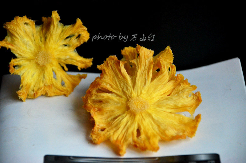 菠萝要挑选成熟的,金钻菠萝味道更甜烘烤时间依据菠萝的厚薄度决定,以防菠萝干花烤焦了