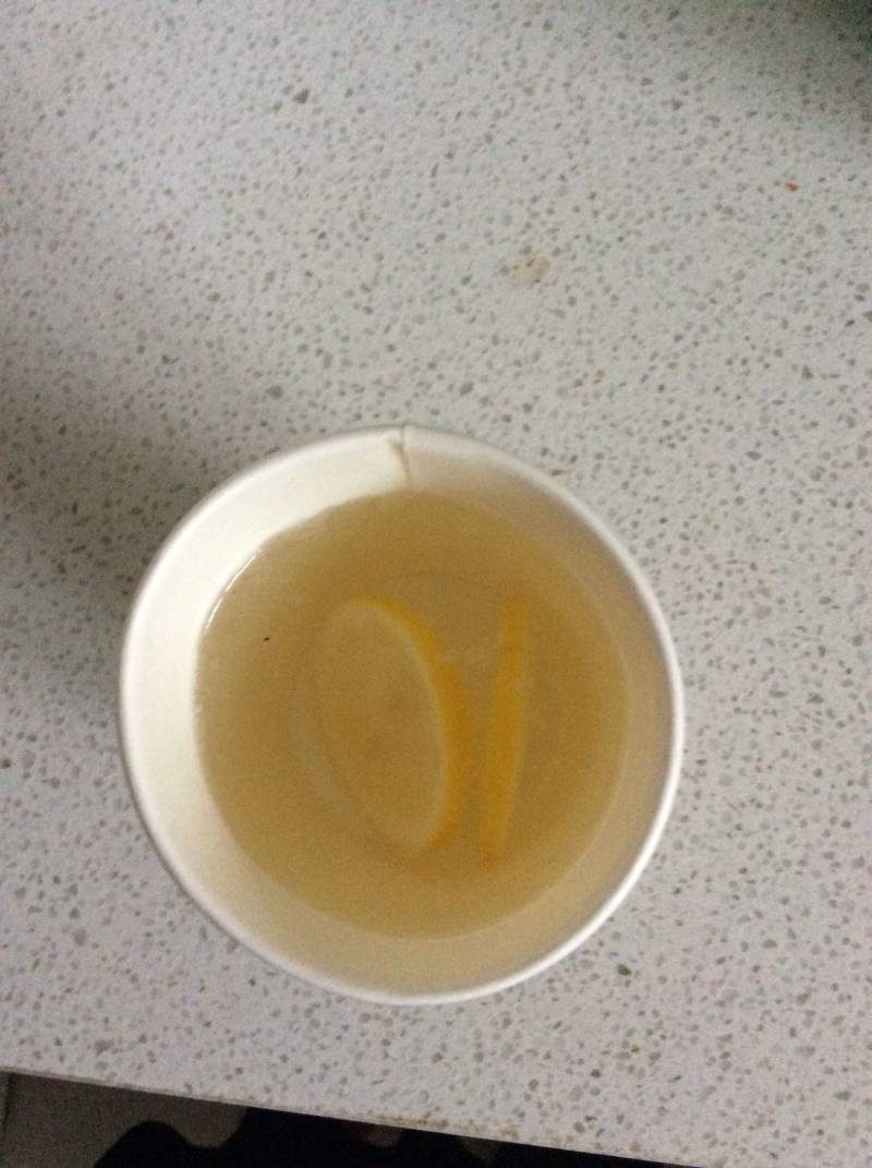 5:取一片柠檬片,倒入一些柠檬水,杯中倒入温水,即可品尝。还可以反复喝水。