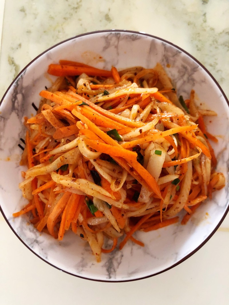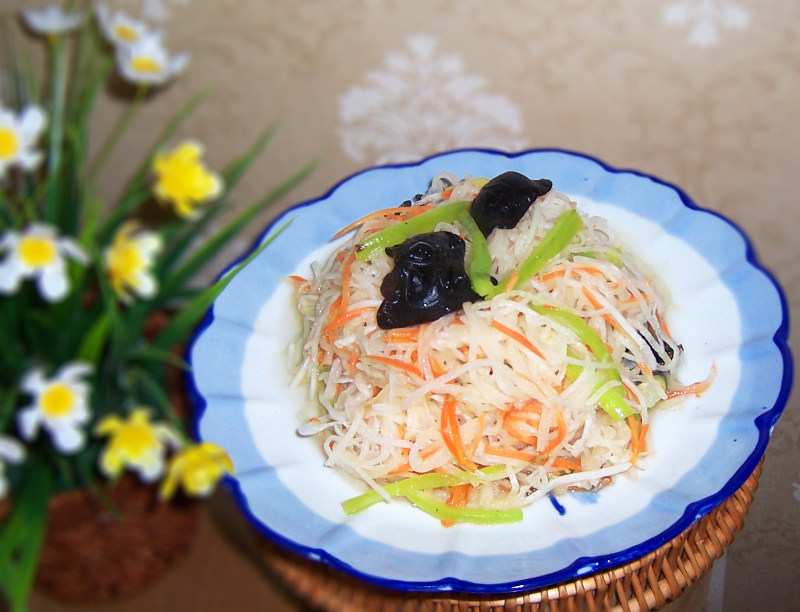2:白萝卜切丝,黑木耳冷水泡发好备用