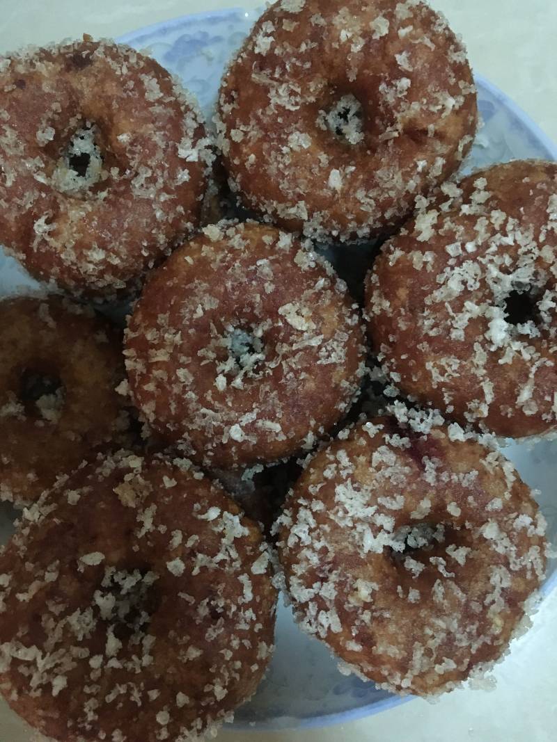 3:前两步忘记拍照了,捏小团,揉成一团,用手指中间戳个洞,裹上面包糠,我是做好了才热油炸的