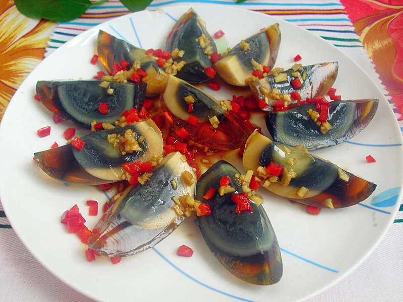 2:将松花蛋剥去外壳。好漂亮的松花。