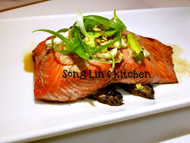 中式烤红鲑搭鲜蘑