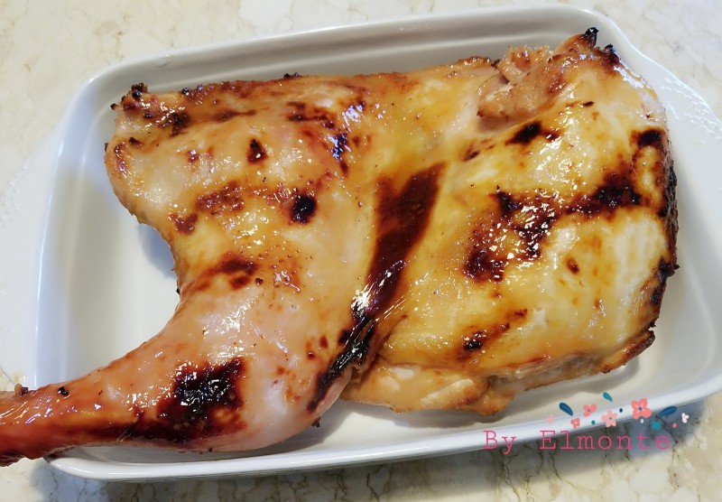 5:送入烤箱200摄氏度烤10分钟后取出静置5分钟让内部用余热再做最后的熟成后,淋上少许蒸鱼豉油上桌咯。切记哦,就10分钟才能多汁好吃。