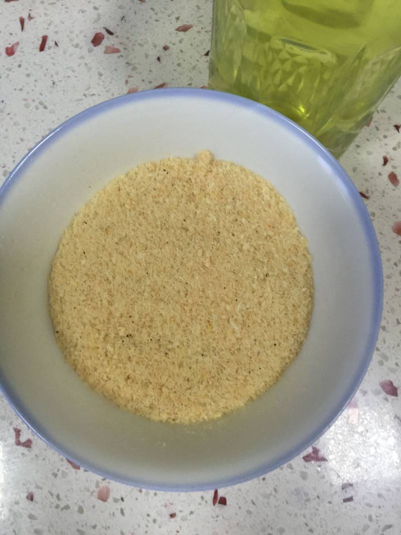6:把炒好的虾皮放在料理机打成很细很细的粉。