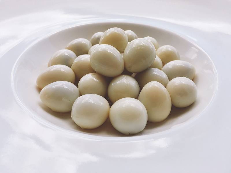 5:鹌鹑蛋皮被撞碎,很容易剥去蛋皮。