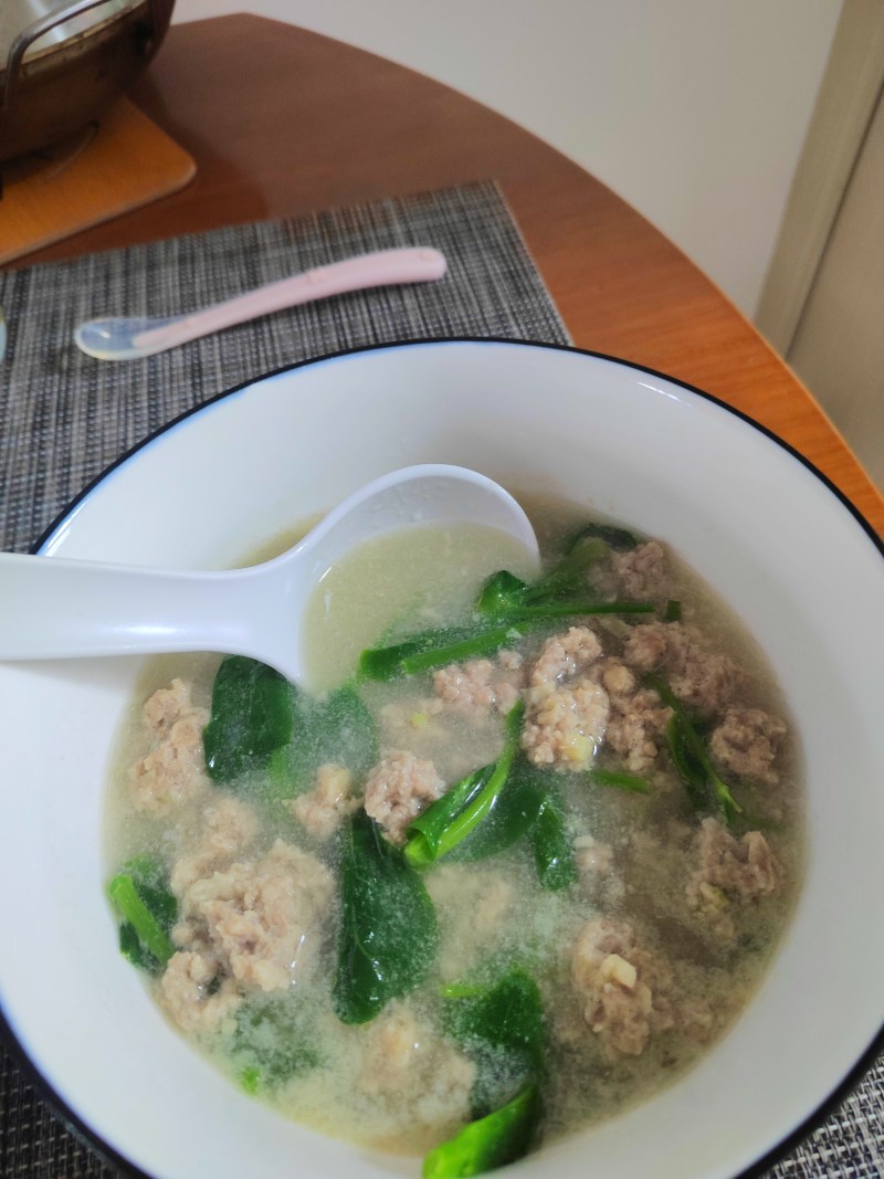 14:清淡香软可口的菠菜鸡肉丸子汤出锅了……