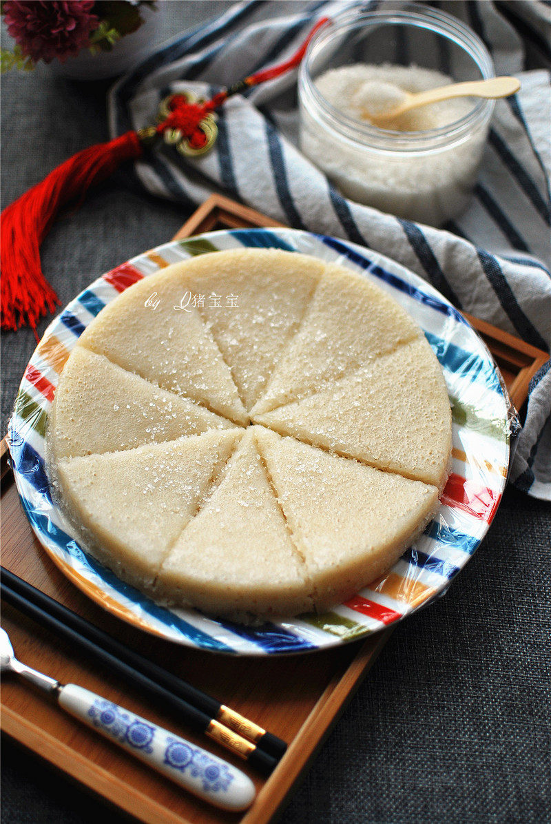 1:买一包米糕干预粉、里面配有发粉包、准备清水、白糖即可。