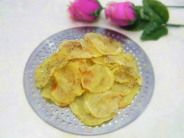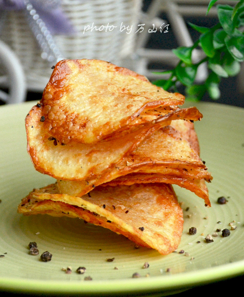 7:炸好的薯片撒上盐和黑胡椒碎即可享用