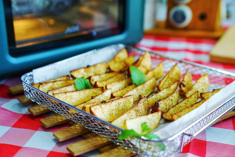 5:5.温度200度,总时长20分钟,中途要取出网架,给土豆块翻个身。