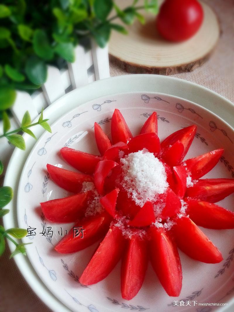 1中间的西红柿切的时候底部不要断2往下分西红柿皮要用水果刀的刀尖,底部也不要断