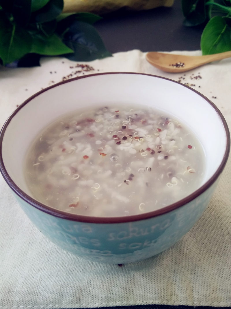 2:藜麦清洗干净,冷水浸泡1小时以上,容易和小米煮在一起。