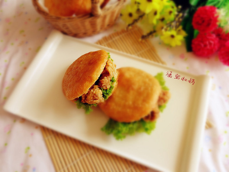 面粉400g;酵母4g;温水230g;里脊肉300g;鸡蛋清1个;盐适量;糖适量;料酒适量;淀粉适量;腌制料适量;孜然粉适量;辣椒粉适量;生菜适量;