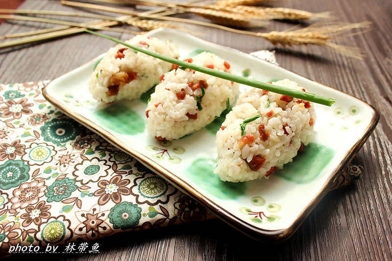 7:炒匀到米饭一粒粒的,盛出捏成团