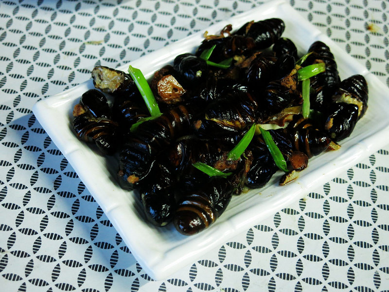 1:茧蛹洗净,煮锅水烧热,放入茧蛹,开锅后五分钟捞出放凉~