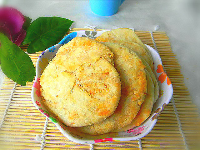 10:扣在烤盘上。全部做好后,在饼的表面再刷上一层油。