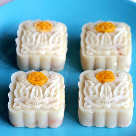 1.南瓜桂花馅可提前做好,放在冰箱里密封保存,没有糖桂花也可不放;南瓜蒸熟后,汁多肉软,所以在炒制时,要放些粉类,可以有效将南瓜汤收敛;但一定要耐心炒干水份,否则后期就无法包馅成功;炒好的南瓜馅也不像枣泥或者豆沙馅那样易成团,还是处于较稀的状态,但可以成团;2.冰皮和南瓜馅的皮馅比例可以是1:1,也可以是3:7,4:6,根据个人口味进行调整;3.在包月饼时,手上可沾些手粉,防粘效果很好;模具中也放一些,然后抖掉多余的粉,但不建议太多粉,否则影响品相及口感;4.做好的冰皮月饼建议用保鲜盒密封,冰箱内冷藏保存,以防风干;冷藏4小时后食用,口味更佳;5.手粉就是用适量的糯米粉小火炒锅内炒熟,微微变黄即可;6.南瓜桂花馅的做法及注意事项见链接7513584-do-blognewfile-id-537115.html