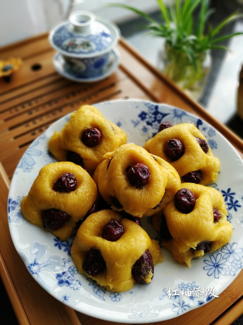 11:在面团四面嵌入红枣。