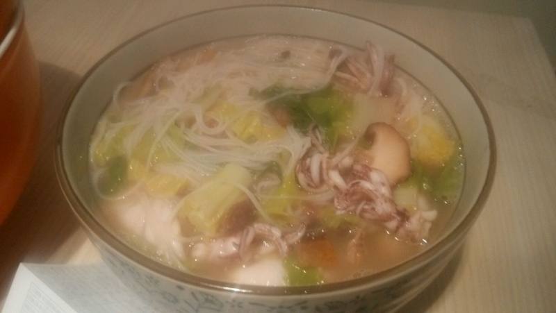 粉丝3捆;冻虾200克;冻鱿鱼1个;