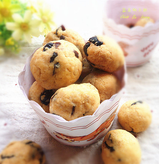 低筋 面粉80克;蛋黄1个;椰蓉15克;蓝莓干40克;低筋面粉80克;