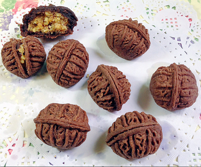 21:预热好烤箱180度,将核桃生坯子送入烤箱中层,用上下火180度烤20分钟出炉。等凉却。