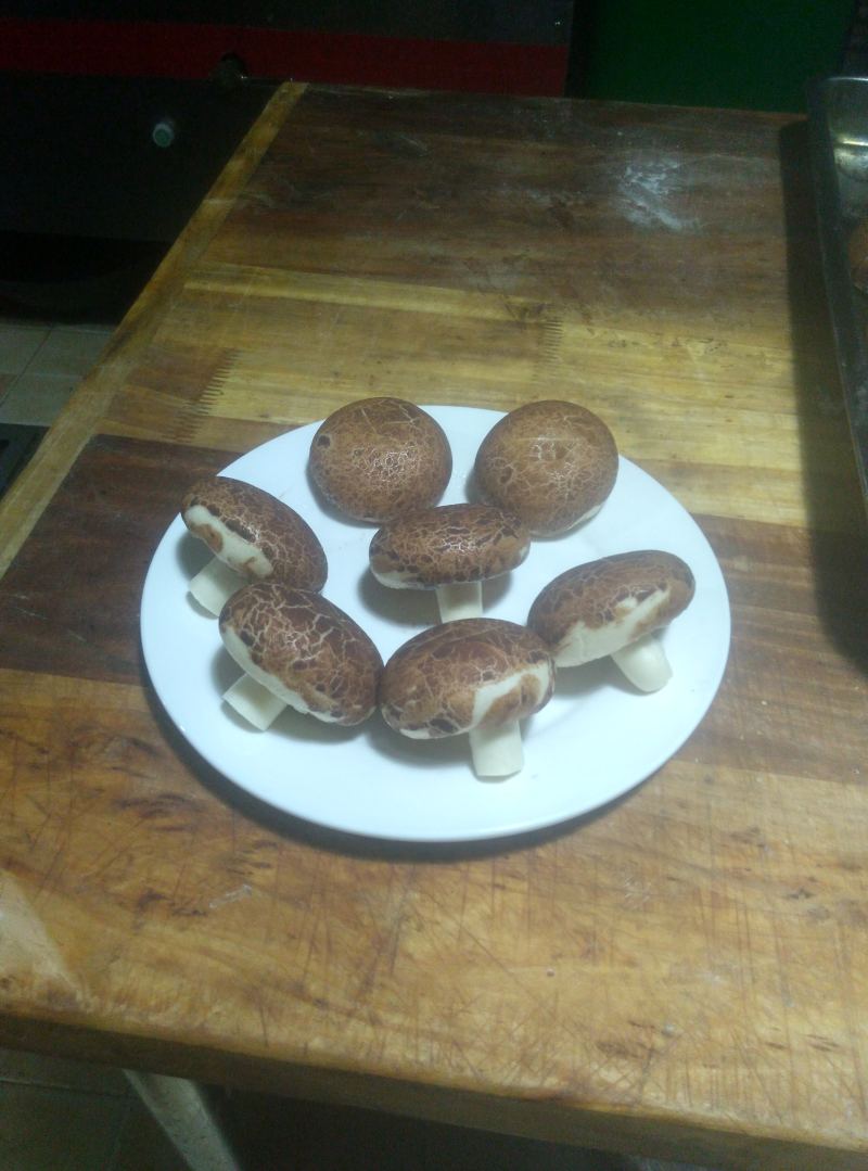 26:把蒸好的蘑菇蒂插进去,蘑菇包就做好啦~~
