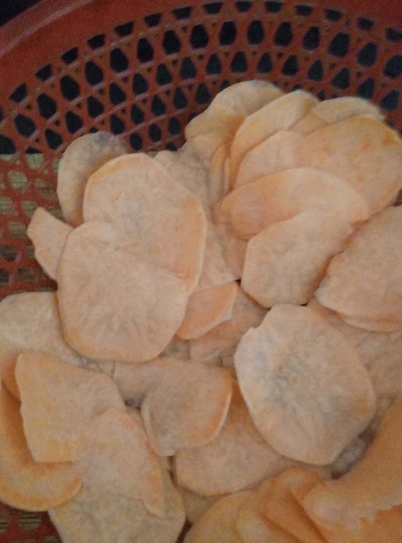 炸的时候用中火,火太大容易糊,火太小呢会炸很久,而且会导致薯片比较油