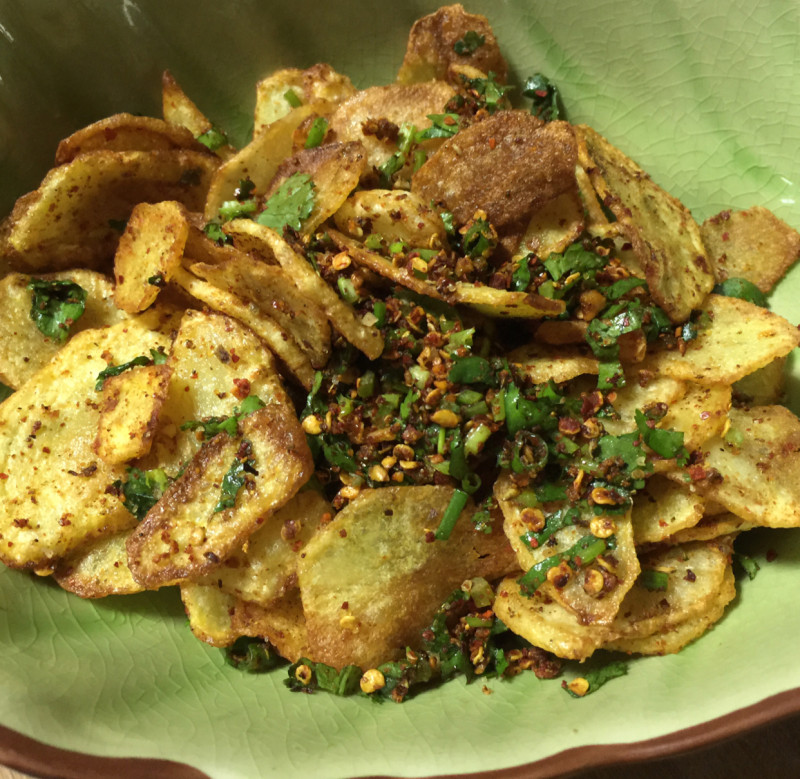 5:拍些孜然粉盐,好吃的薯片做好了。