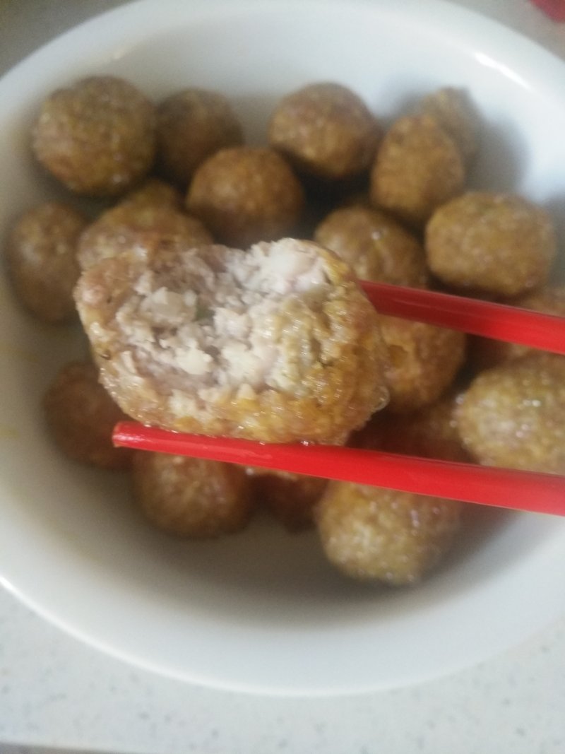 6:即可捞出丸子,再煎炸下一锅,如此重复直到所有丸子做好。