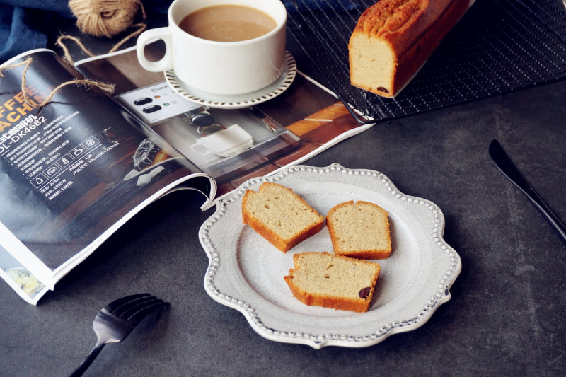 8:准备好磅蛋糕模具,不能使用戚风蛋糕模,使用的是长条形磅蛋糕模,尺寸230*50*65mm,在模具底部垫一张裁好尺寸的油纸,方便脱模。将蛋糕糊倒入磅蛋糕模具里,可以用小汤匙抹平表面,两边高,中间凹