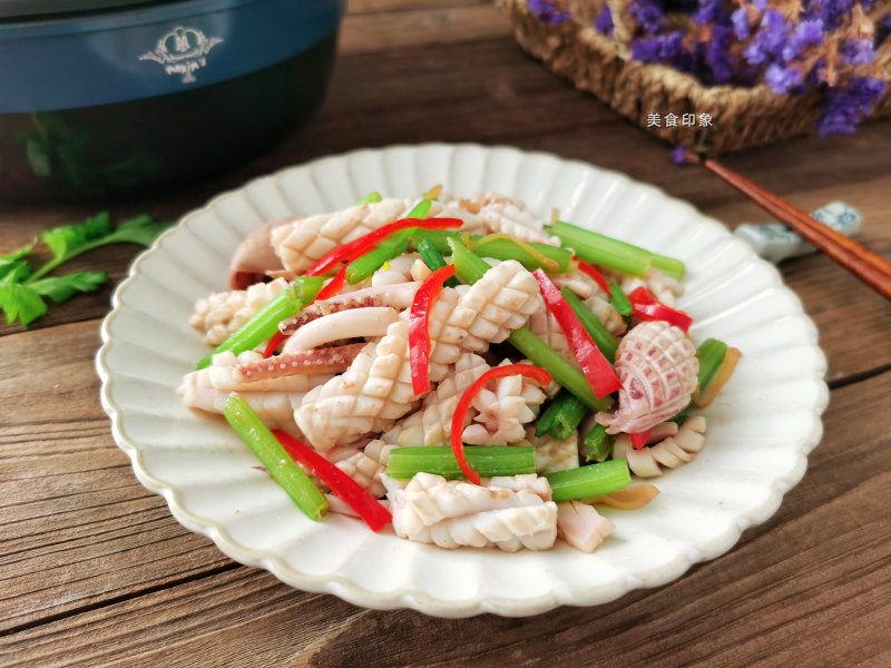 3:油滚烫了,才把鱿鱼倒入炒锅爆炒!
