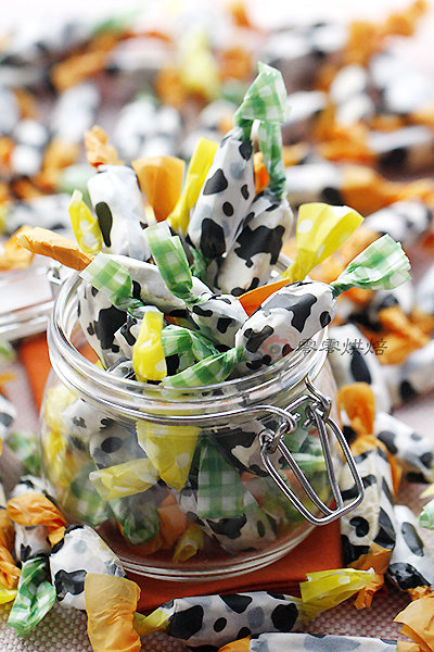 5:切成块后用糖纸包好即可(夏天可真不好包装,从冰箱拿出来一会就化,开始沾手,还是冬天适合做牛轧糖)。
