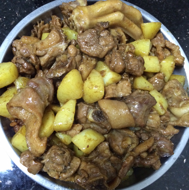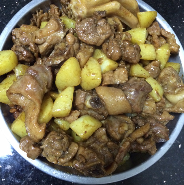 6:十五分钟后把土豆倒进去和鸭肉一起焖!