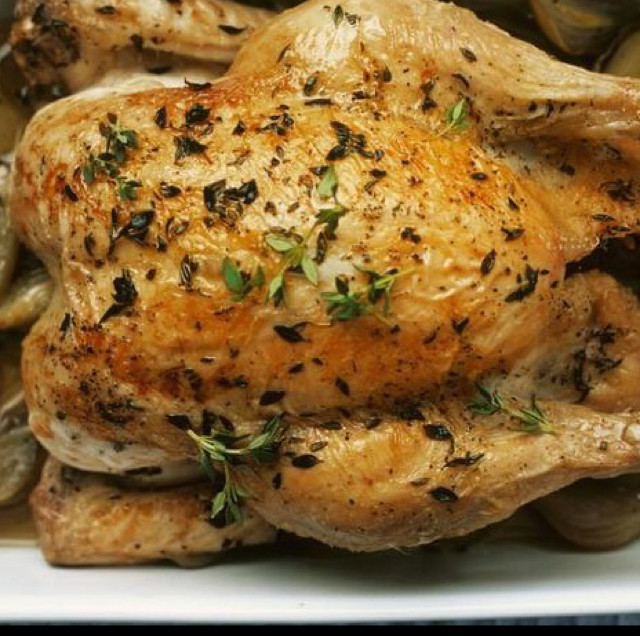 1:60g盐/升水,鸡肉入水浸没冰箱放一天鸡腹内塞入一整个柠檬和百里香,表面抹上黄油