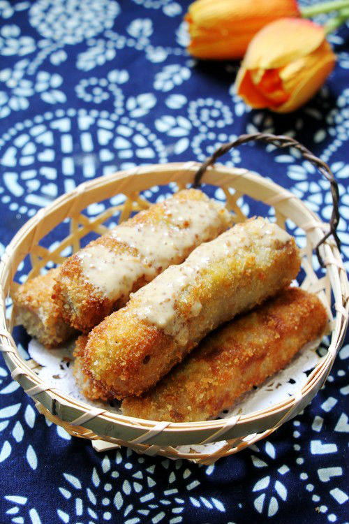 5:把芋条蘸入蛋液