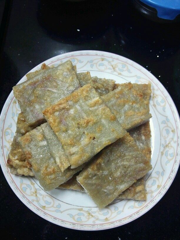 8:也可以放凉,切块,煎至两面金黄。