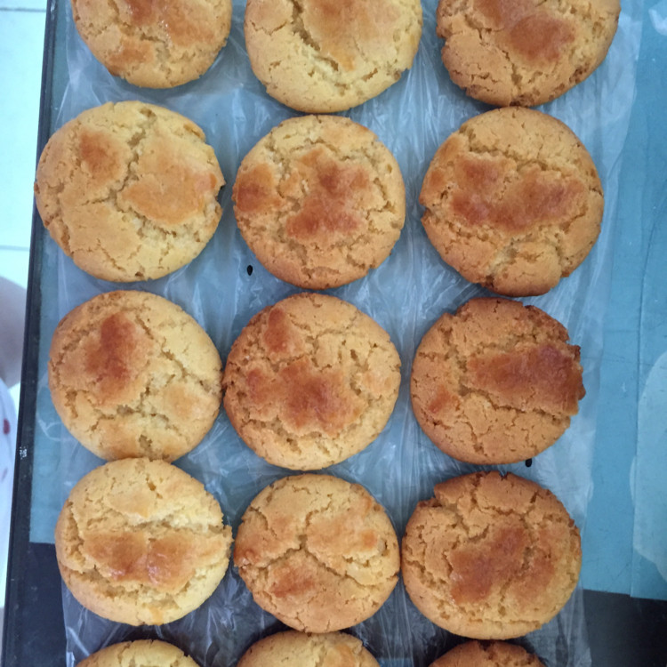 10:预热烤箱,上火180度,下火165度,烘烤20分钟左右就可以了。(根据桃酥表面上色情况,具体定上火温度和时间长短。)